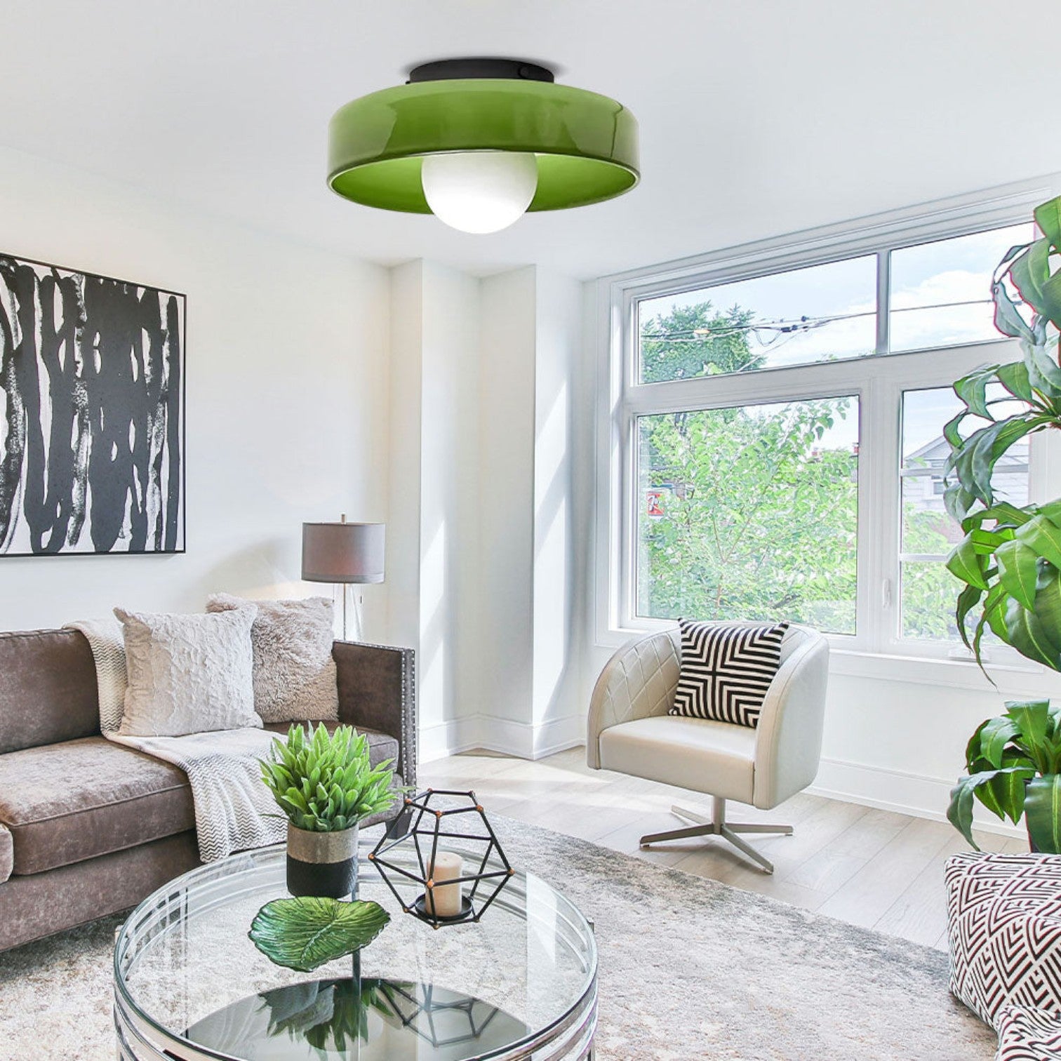 Moderne loftslampe, perfekt til husejere, der ønsker stilfuld og funktionel belysning. Denne loftslampe har en håndblæst, sandblæst ravfarvet glasskærm, en hvid, matteret glasdiffusor og et slankt overflademonteret design, hvilket gør den til en sofistikeret tilføjelse, der vil forbedre ethvert rum med sin elegante glamour og moderne stil.